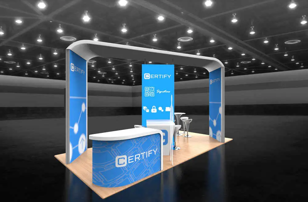 Certify Global had a uniquely challenging booth space consisting of an unusual 10 x 20 sized island.